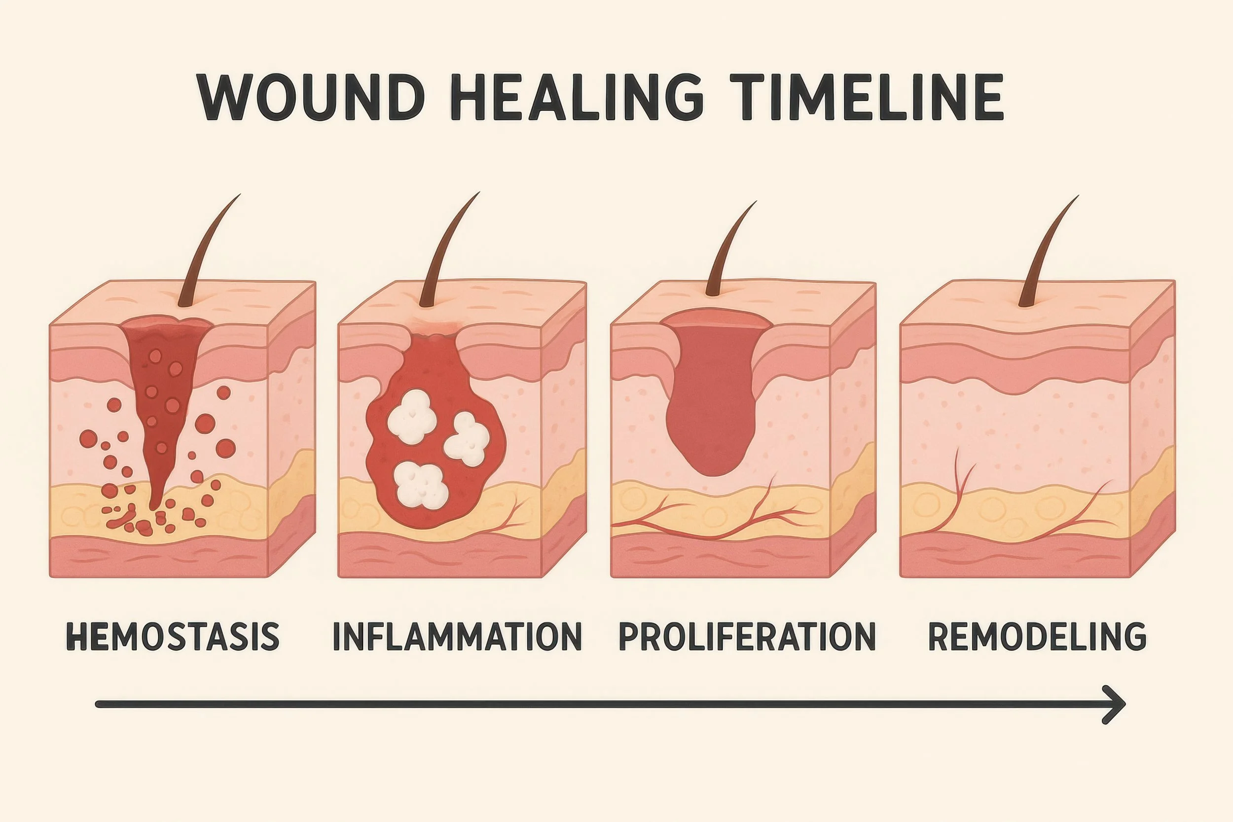 En resumen, la acumulación de líquido, detritus tisulares, cuerpos extraños, microrganismos oportunistas de la piel, etc prolongan la inflamación y comprometen el proceso de curación. El DLMV y la compresión son las mejores herramientas para colaborar con el sistema linfático en su trabajo y favorecer el desarrollo de mejores cicatrices.
